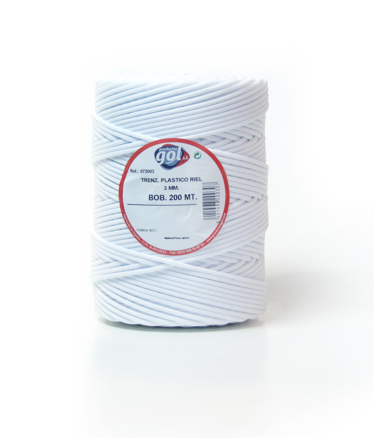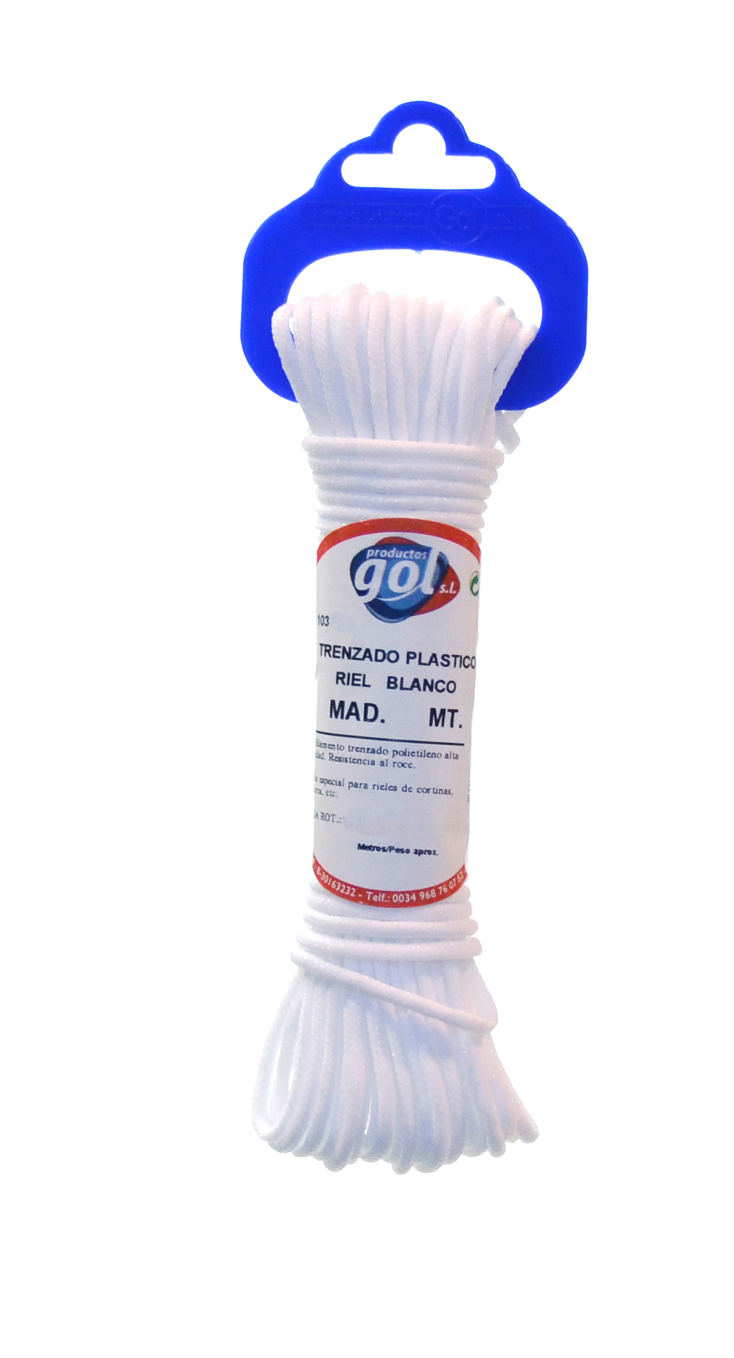 Trenzado exterior e interior de monofilamentos de polietileno 100%. Alta tenacidad con tratamiento UV. Semirrígida, suave, fácil limpieza, poca elasticidad, resistente al roce. Utilidades: cordón especial para rieles de cortinas, tendedero, agricultura, ganadería, bricolaje.