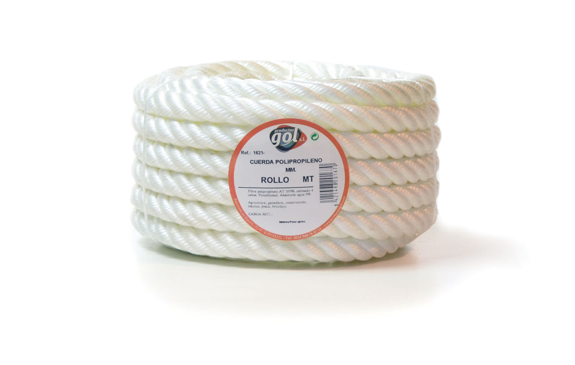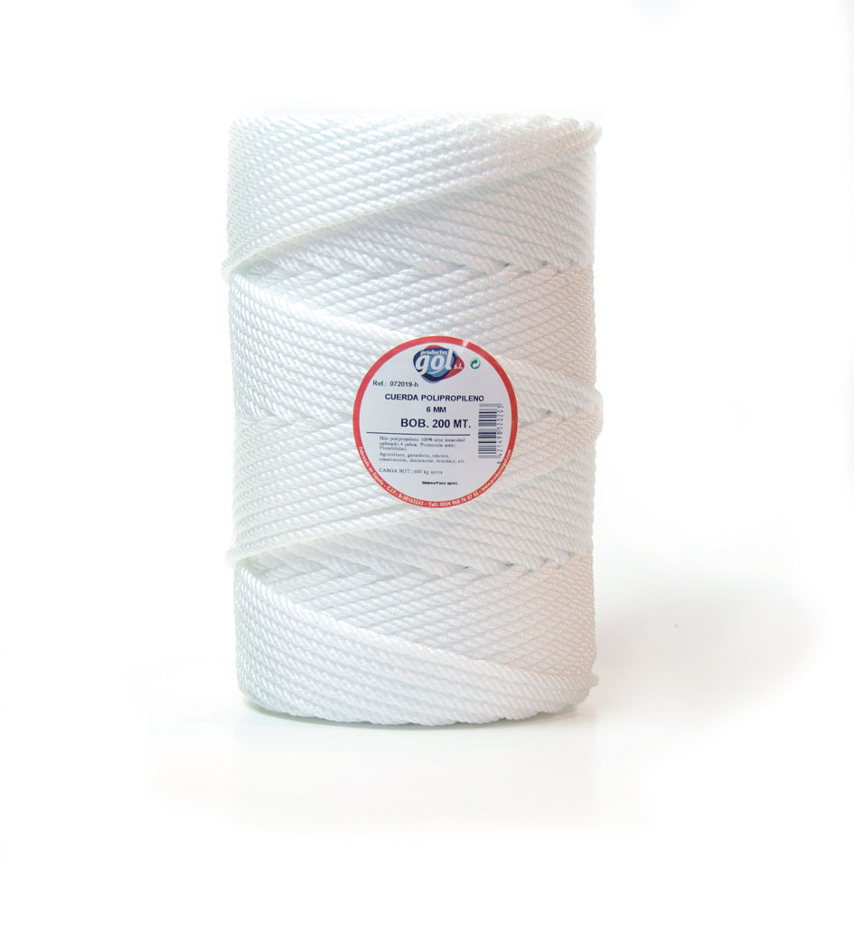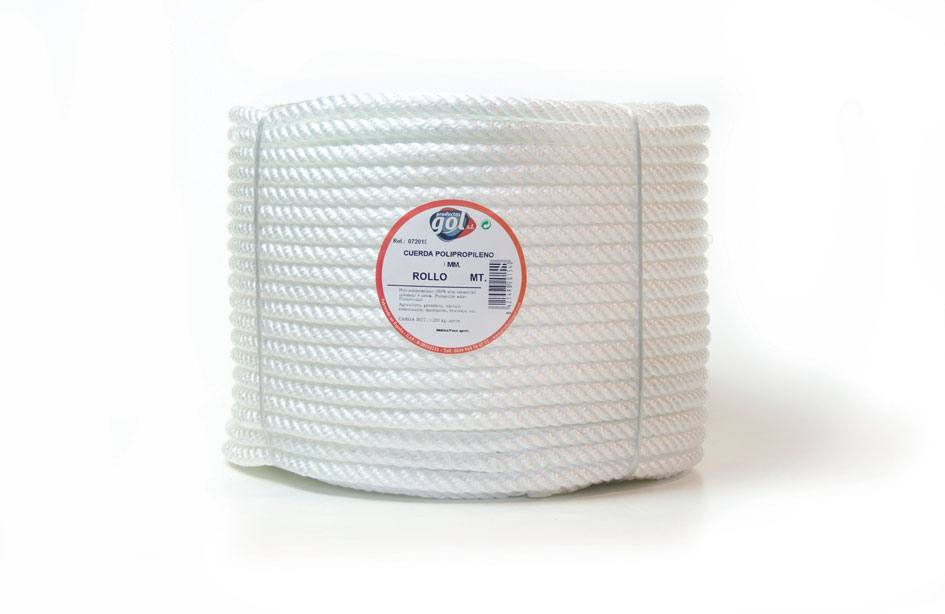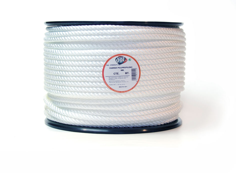 Multifilamento cableado 4 cabos polipropileno alta tenacidad con protección solar. Flexible, buena resistencia a la tracción y al roce. Tacto suave. Posee flotabilidad. 0% Absorción al agua. Utilidades: Agricultura, ganadería, construcción, pesca, pozos, decoración, industria, bricolaje.