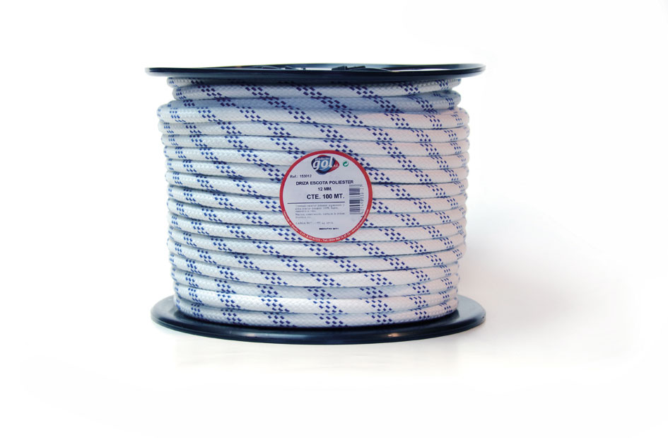 Trenzado escota algodonada poliester alta tenacidad. Trenzado exterior e interior con fibras de primera calidad. Buenas resistencia al roce y tracción. Suave al tacto, no quema en las manos, flexible y no se deteriora en el agua. Sumergible. Con protección UV. Drizas ideales para náutica, pesca, efectos navales.